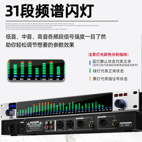 拥有31段频谱闪灯,低中高音各频段信号强度一目了然,调节随心所欲,搭配智能自动降噪,降低环境噪音干扰,还你干净清澈声音。