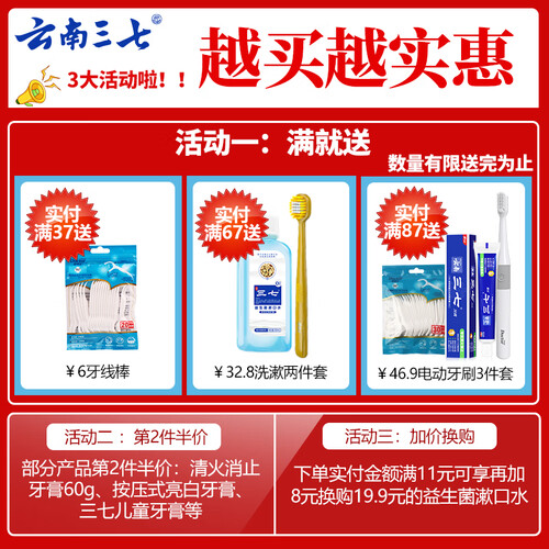 萃取三七提取物等成分,深层清洁牙渍,改善牙黄,舒缓牙龈上火、敏感问题,去除口腔异味,让你社交更自信。