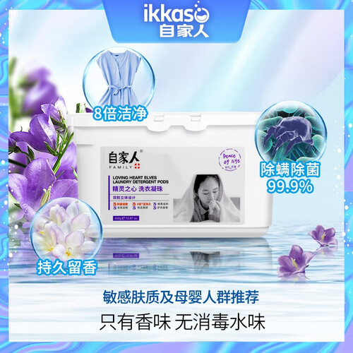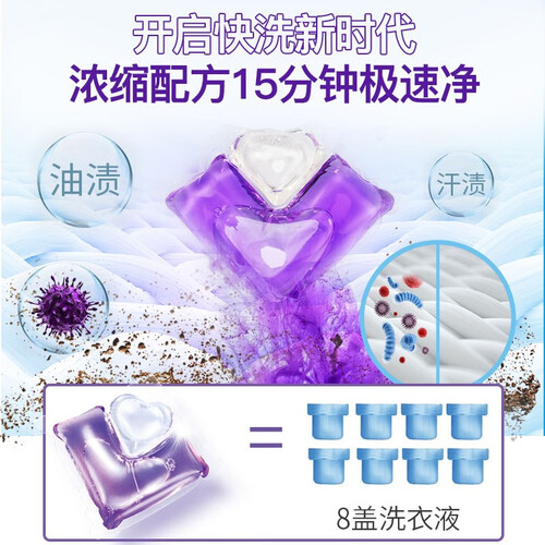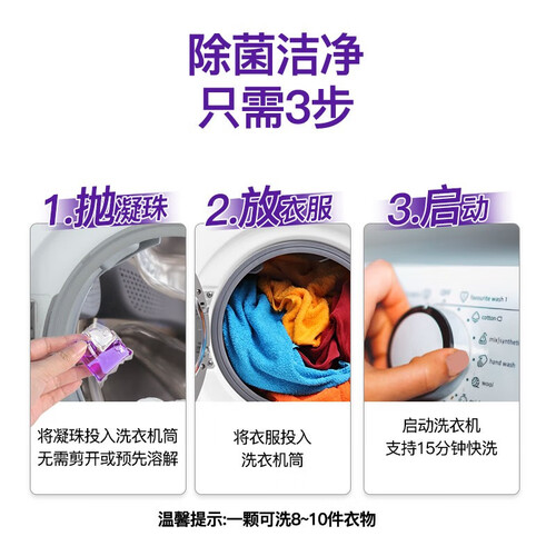 这款洗衣凝珠可以有效去除衣物上的细菌和螨虫,并抑菌长达72小时,守护家人穿衣健康。采用浓缩配方,去渍更快。