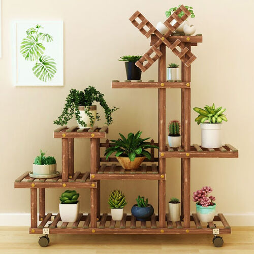 花架子周边增加了栅栏,可以有效的防止花盆掉落,造型优雅时尚。边角处采用加固的卡扣设计,可以放置花架倾斜。