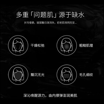 蕴含双重保湿成分,莹润肌底,为肌肤源源不断的补充水分,强化肌肤锁水屏障,由内透现水嫩肌肤。黑色纤维膜布,深澈净化肤质。