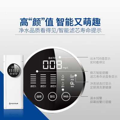 出水带有TDS值显示,水质状况一目了然,全家很放心。一体式的滤芯设计,单手即可完成换芯,家庭主妇轻松操作。