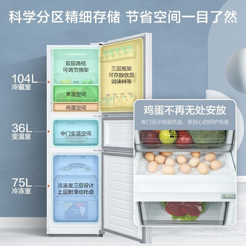 升级多维立体出风的结构,释放循环冷风,避免直吹结霜。搭载双系统制冷模式,设置独立的冷藏空间,互不串味持久养鲜。