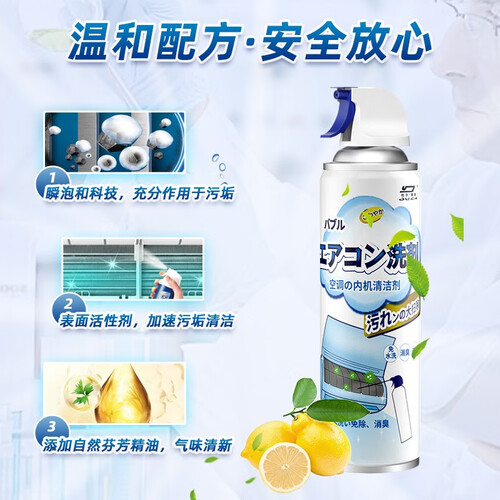 泡沫型清洁剂,强力去污,清洗后可有效延长空调使用寿命。深入清洁,不留死角,去污同时也有效消臭,还你一个清新的生活空间。