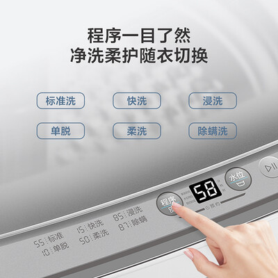 强劲直流喷洗技术,避免二次污染。8种洗涤程序,针对不同情况衣物。24小时预约模式,适应快节奏现代生活。