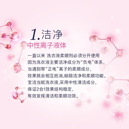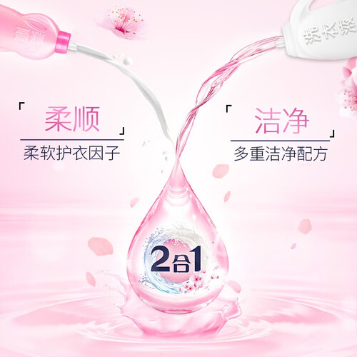 蕴含柔软护衣因子,帮助抚顺干硬衣物,穿衣更加柔软舒适。添加樱花精粹,持久散发迷人香气,心情更加美好。