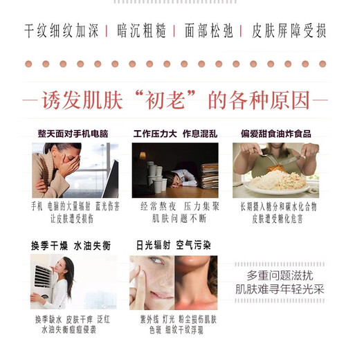 含有科学配比的神经酰胺成分,助力修护肌肤受损屏障,强韧肌肤。搭配4D玻尿酸的丰盈补水力,让肌肤轻松喝饱水,不再缺水干燥。