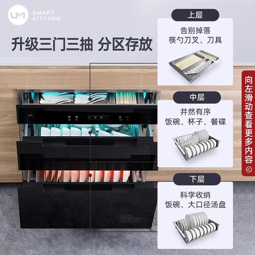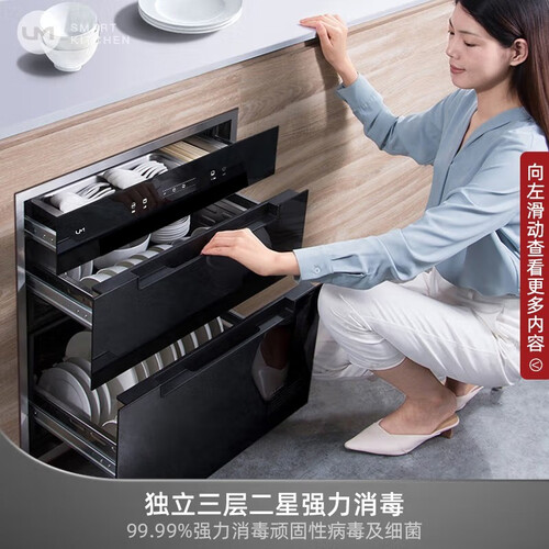 外置滑轨,推拉自如,拿取餐具更加方便,同时能有效防止二次污染。设有多重安全防护,洁净餐具的同时守护家人安全。