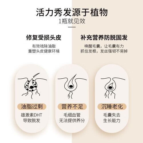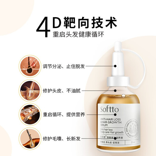 4D靶向技术,重启头发新生健康循环。调节分泌,防止秀发脱落,恢复头皮健康,不油腻,重启循环,提供头皮养分。
