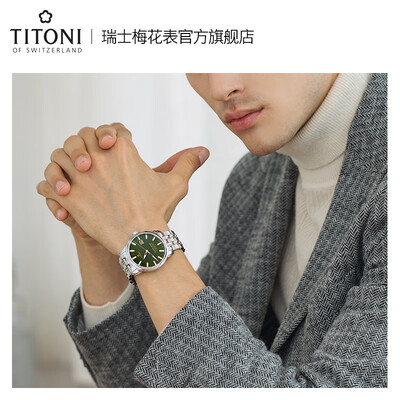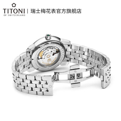 双向上链的自动陀设计,嵌入了26颗宝石做轴承,齿轮运转更稳定流畅,结合绿色放射纹理表盘,清新雅致。