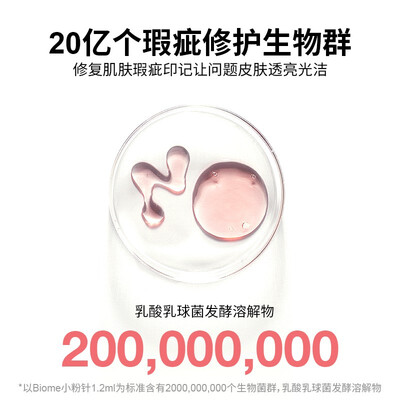 蕴含233亿益生菌的爽肤水,直达肌底快速补水,30小时持续保湿,搭配高浓缩的小粉针使用,修复瑕疵痘印,重现光洁美肌。