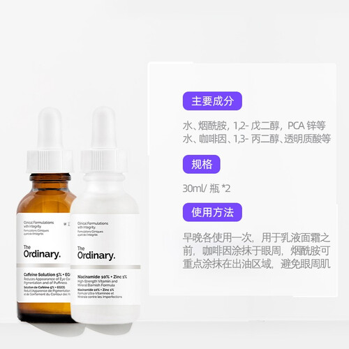 烟酰胺具有提亮肤色的效果,能使皮肤更白皙。添加了咖啡因的成分,可以消除面部水肿,不必担心早起浮肿问题。