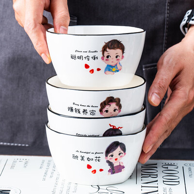 配套的6个碗分别描绘了一家多口的卡通人物形象,萌趣时尚的图案,可为你营造温馨的用餐氛围。
