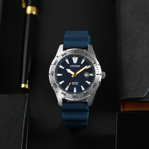 西铁城 深海蓝盘带夜光手表