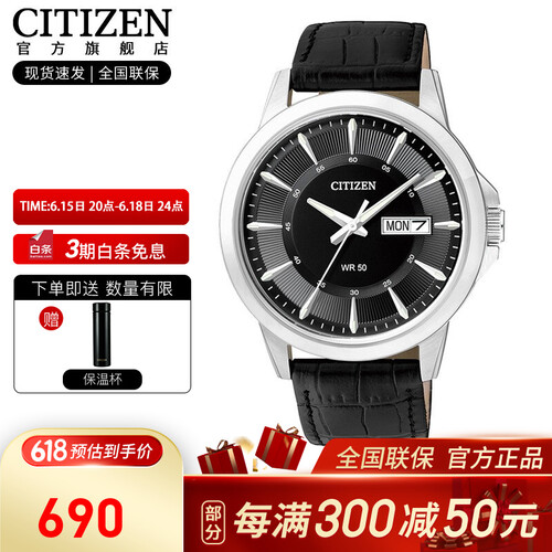 西铁城 小牛皮表带日韩表