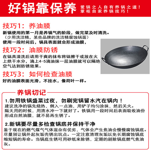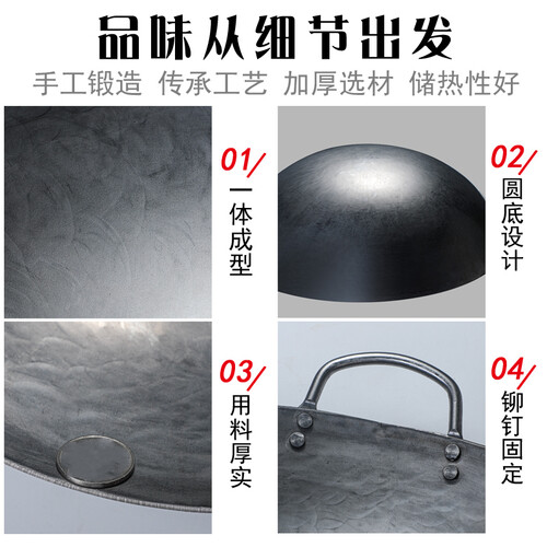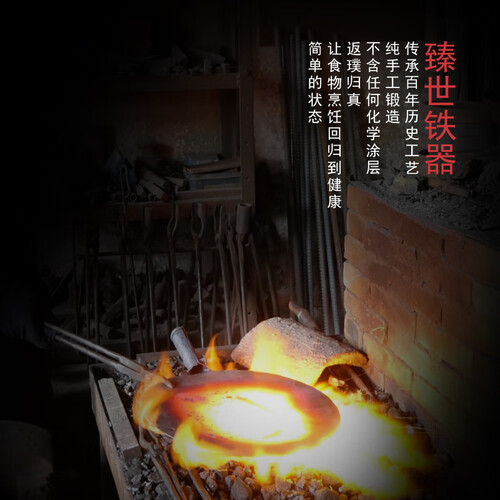 纯手工锻打的炒锅,质量真的非常好,熟铁打造,少油烟、不易粘锅无涂层、不生锈。