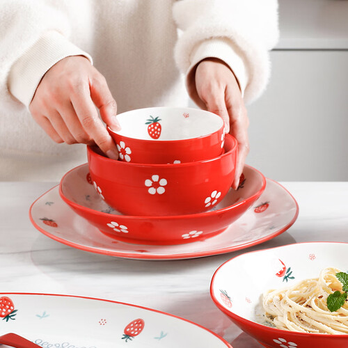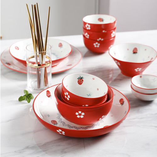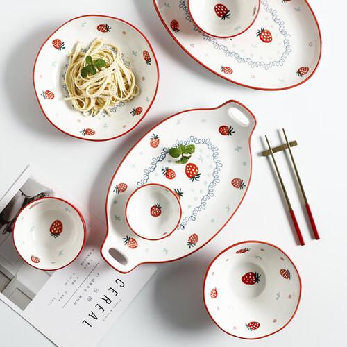 半物生活 草莓印花餐具套装