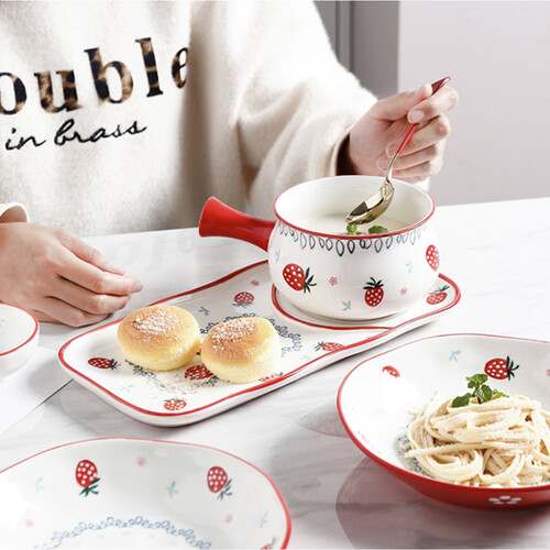 简约日式风格设计,搭配草莓釉下彩印花,显得更加美观。选用优质陶土经过高温烧制而成,密度高,经久耐用。