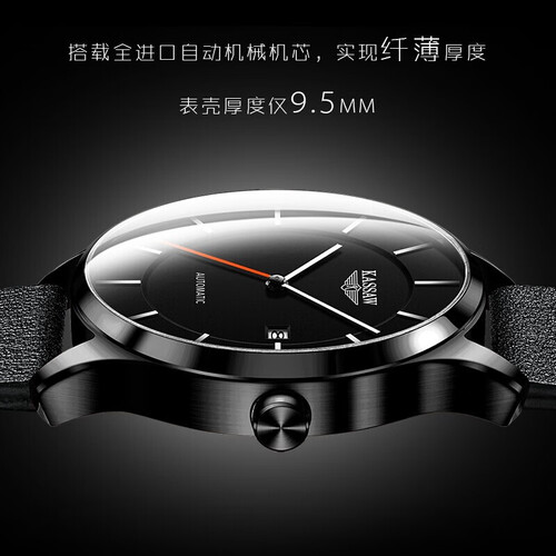 采用小牛皮表带设计,质感细腻,提高亲肤性,佩戴更舒适。采用大三针表盘设计,既简约又大方,衬托男士儒雅的造型。