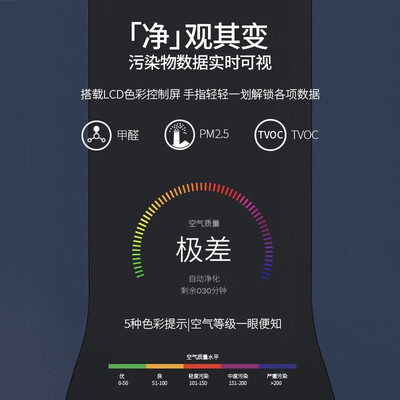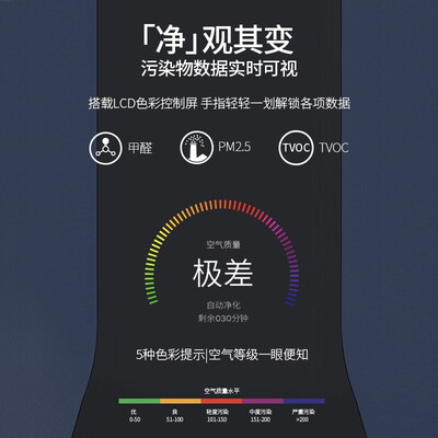 采用前出风结构,有利于增加出风面积,将多个区域都清洁。搭配智能芯片滤芯技术,优化净化器性能,提醒滤网更换。
