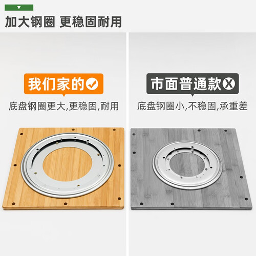 高山楠竹板材,材质坚韧耐用,久用不易开裂。底盘的金属圈加大,承重力更强,稳固不易晃动,旋转起来顺滑不卡顿。