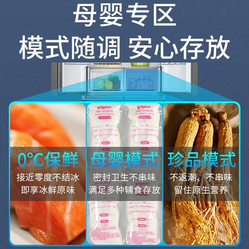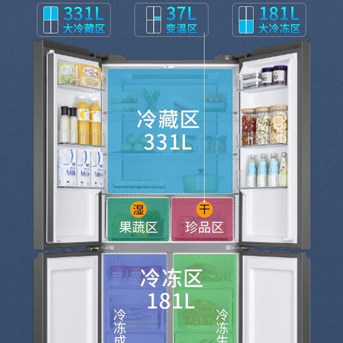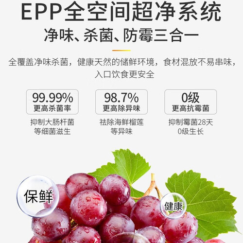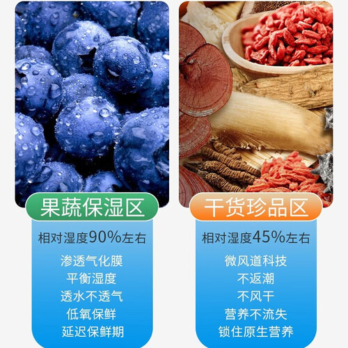磨砂玻璃面板,触感温润,不易吸附污渍,清洁省心。干湿分储,不同食材分类存放,精准锁鲜,还可避免串味。
