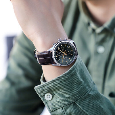 舒适柔软的牛皮表带,质感轻盈的同时减轻对手腕的压力。黑色的表盘结合金色的指针和刻度设计,奢华大气,很有休闲商务风。