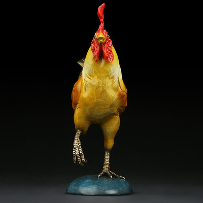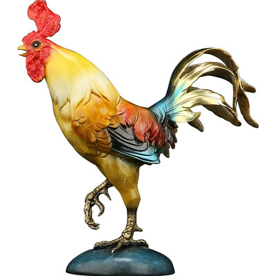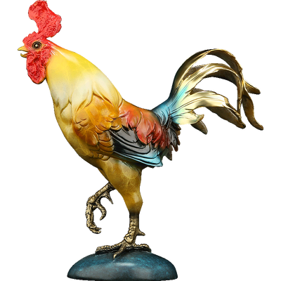 铜鸡表面用高温着色工艺,纹理更加清晰,彰显出典雅高贵之感。有经过打磨后的平稳底座,雄鸡站立于上昂然挺立,为家庭带来财运。
