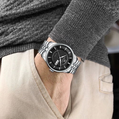 创意采用菱形格纹表盘,个性又时尚,佩戴腕间更显别致。搭配剑形指针设计,将精明干练之风充分展现。