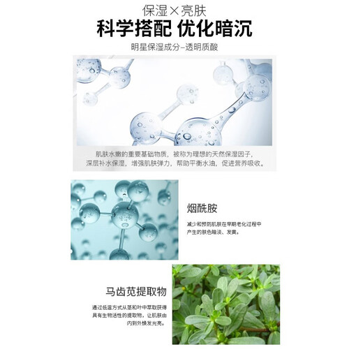 使用母菊花提取物,减少皮肤淡黄现象,让肌肤持久保持水润透亮。采用高纯度烟酰胺组合,有利于滋养修护皮肤。