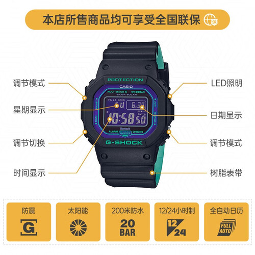 个性霓虹蓝紫撞色设计,别具一格。一体成型双色表带,更显潮流魅力。同时具有高亮度的LED照明功能,方便在夜间使用。