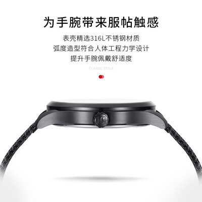 编织米兰表带具有利落的线条,舒适贴肤。3点钟方向设计有日历,实用性强,可以增加表盘可读性。罗马数字,读时清晰。