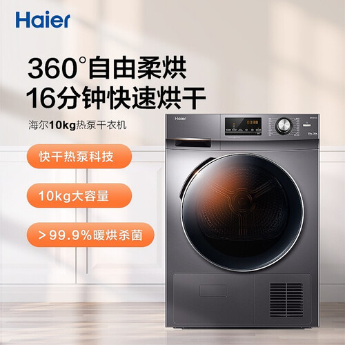 56℃快速干衣,只需16分钟即可烘干一件衬衫。10公斤大容量,让衣物在筒中自由舒展,可一次性烘干全家衣物,省时省心。