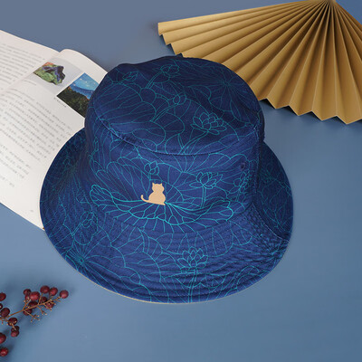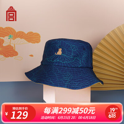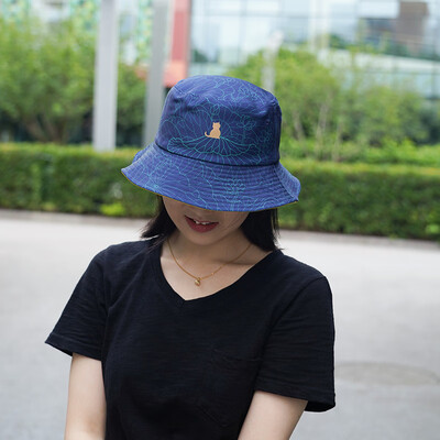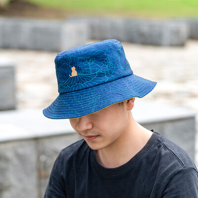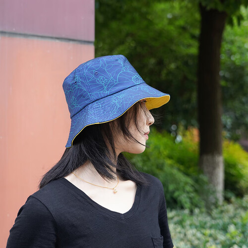 做旧感的蓝色配色,结合线条感的印花,遮阳帽防晒之余还很有复古中国风。