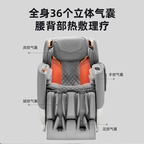 按摩椅采用优质PU面料制作,触感柔软舒适透气。配备了手控器,功能一键直达,方便老人使用。