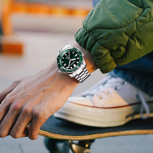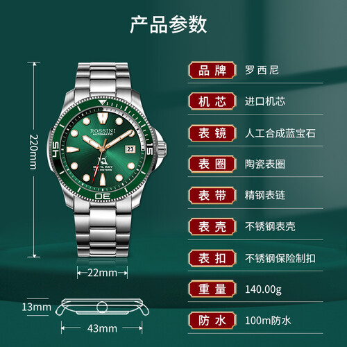 采用新潮绿表盘设计,无不散发着独具一格的个性魅力。蓝宝石材质的表面更加坚固防刮,持久耐用,不易损坏。