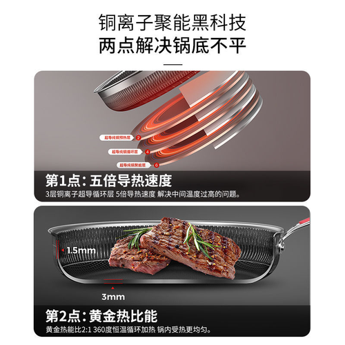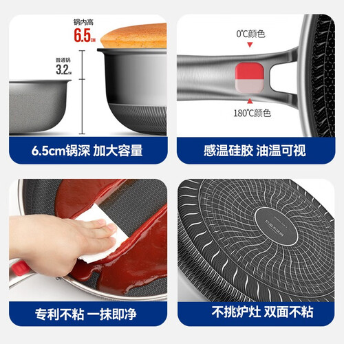 超导聚能技术采用加厚超导聚能底,导热均匀,保持久用不凸底。纯物理不粘设计,清洁更方便,饭后更加省心。