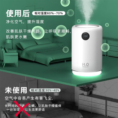 无线设计,方便移动使用,自带电池,支持边充边用,让室内持久湿润。采用超声波雾化技术,可形成纳米级水雾,深层补水滋润肌肤。