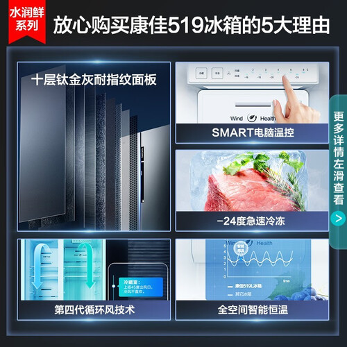 运用多维风循环功能,多方位均匀出风,食材保鲜效果更佳。具有智能调节功能,自动调节适宜温度,解放你的双手。