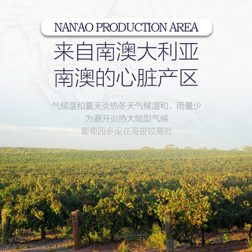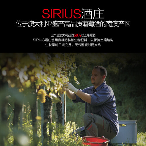 人工采摘赤霞珠葡萄,结合传统酿造方法,保留馥郁清甜葡萄果味。使用来自南澳大利亚的葡萄为原料,适合生产酒体丰满的红酒。