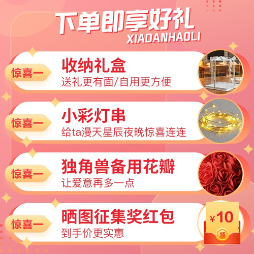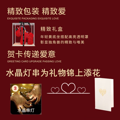 永生玫瑰花结合灯串,十分的美妙,作为礼物送人是不错的选择。花型饱满的设计,送女友、送闺蜜都可以。