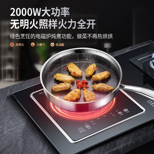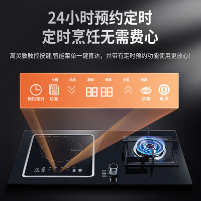 燃气灶采用分离式电磁炉设计,拆分简单便于移动,随时随地吃火锅。使用触控按键,操作反应十分灵敏。