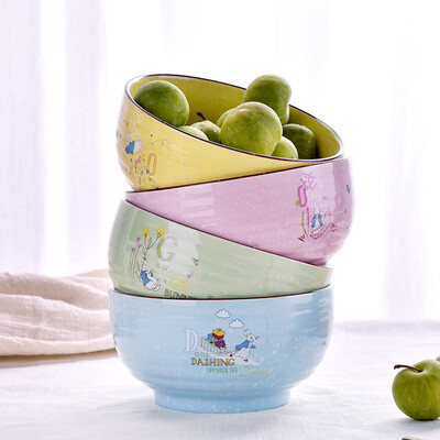 碗具以可爱的卡通造型为图案,其色彩更加明亮,餐具更显可爱有趣,选用优质高岭土为原材,经高温烧制而成,碗具更加坚固结实。