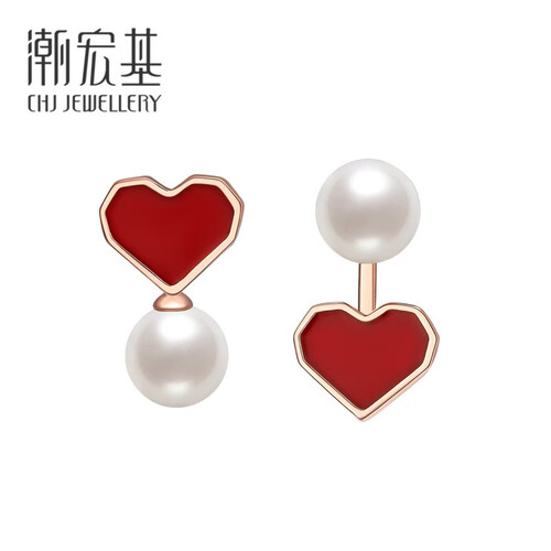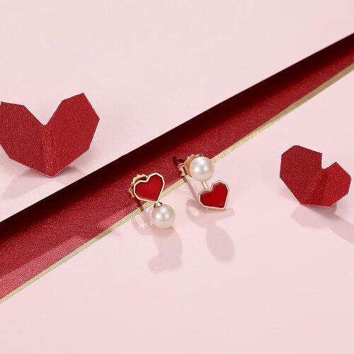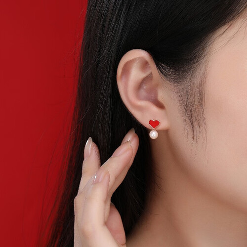 小红心与白珍珠搭配,打造出富有艺术气息的不对称造型,创意又彰显个性。点缀在耳间很减龄,适合年轻女孩佩戴。