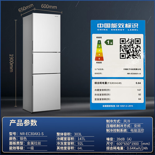 松下APP互联三门冰箱