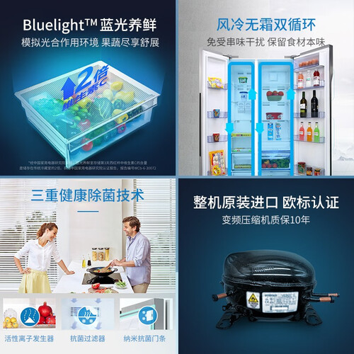 原装进口压缩机,制冷快速均匀,让食材新鲜有保障。双循环系统,减少冰箱内部温差波动,更节能省电还避免串味问题。