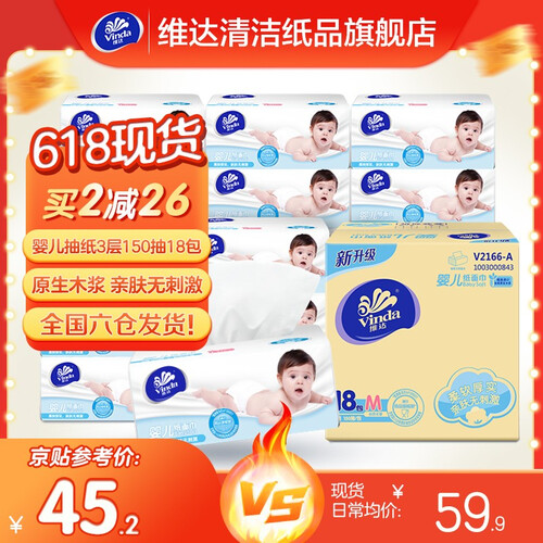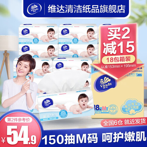 采用质感双压技术,纸巾不易散;选用原生木浆制成,原料更健康;搭配绵柔工艺,手感更加细韧;安全无刺激,给宝宝贴心的呵护。
