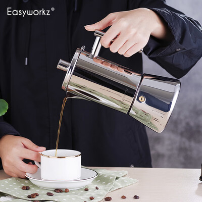 镜面壶身,通体明亮质感,双层不锈钢材质,厚实防烫,不锈钢细密粉槽,精密孔滤,咖啡纯粹香醇被充分萃取,浓香四溢。
