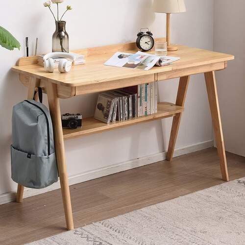 书桌两大抽屉设计,具有强大的储物功能,更方便分类收纳物品。升级的实木笔筒挡板,有效防止物品掉落,笔随用随取。