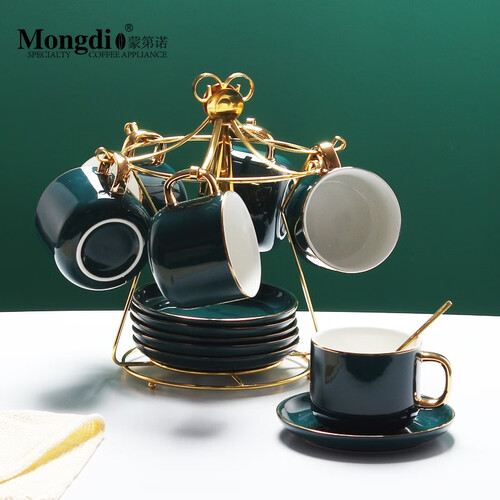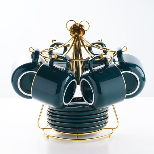 金色的杯把与墨绿色的杯面形成撞色设计,整体的色彩感更加丰富,不显单一。杯把打磨圆润流畅,符合握持曲线。